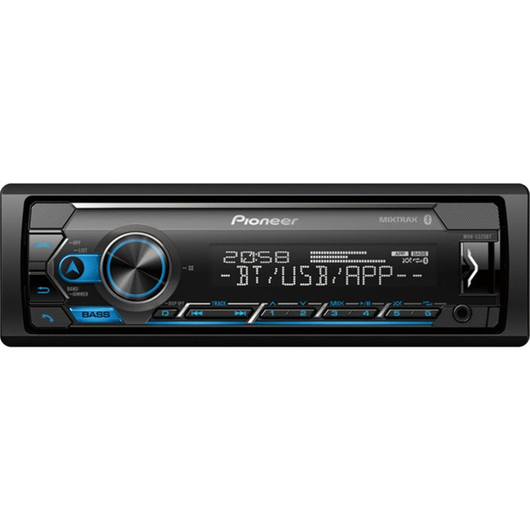 پخشکنندهی خودروی « MVH-S325BT» از محصولات کمپانی «پایونیر» (Pioneer) است. این محصول با امکانات و ویژگیهای جالبی طراحی شده است. MVH-S325BT به یک عدد پورت USB مجهز است که از طریق آن میتوانید فلشمموری خود را به آن متصل کرده و از فایلهای دلخواهتان در خودرو استفاده کنید. برای راحتی کاربران، این پورت در قسمت جلویی بدنه تعبیه شده است؛ همچنین در صورتی که مایل باشید فایلهای موجود در MP3 Player خود را از ضبط خودرو بشنوید، میتوانید با استفاده از پورت AUX این مدل، پخشکنندهی موسیقی تان را به آن متصل کنید. گفتنی است که سیستمعامل سازگار با این دستگاه، اندروید و iOS هستند که میتوانید با اتصال تلفن همراه از طریق کابل، بلوتوث و اپلیکیشن پایونیر فایلهای صوتی موجود در آن را به پخش بگذارید. فرمتهای صوتی MP3 / WMA / AAC / WAV / FLAC در این مدل پشتیبانی میشوند تا کاربران بهراحتی از فایلهای موردنظر خود استفاده کنند. بیشینه توان خروجی این دستگاه 4 × 50 وات بوده و کیفیت آن 16 بیتی است. برای پخش فایلها از این دستگاه میتوانید از فلشمموری یا گوشی خود استفاده کنید. در جعبهی این محصول، ریموت کنترل، میکروفون و کابل رابط وجود دارند گفتنی است این محصول از سازگار با استاندارد 2006 CEA پشتیبانی میکند و میتوانید از Spotify برای پخش در آن استفاده کنید. هم چنین، می توانید با استفاده از این دستگاه مکالمات خود را مدیریت کنید و از دستیار صوتی Siri و یا GOOGLE ASSISTANT استفاده نمایید. قابلیت MIXTRAX نیز برای اتصال مستقیم به سابوفر نیز برای این محصول در نظر گرفته شده است.