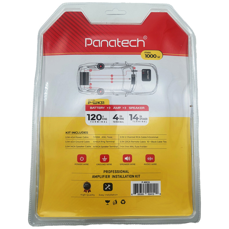پک سیم کشی Panatech مدل P-WK31 یک مجموعه کامل و حرفهای برای نصب سیستم صوتی خودرو با توان 1000 وات است. این پک شامل تمامی کابلهای مورد نیاز برای اتصال و راهاندازی سیستم صوتی به صورت بهینه و با کیفیت بالا میباشد.