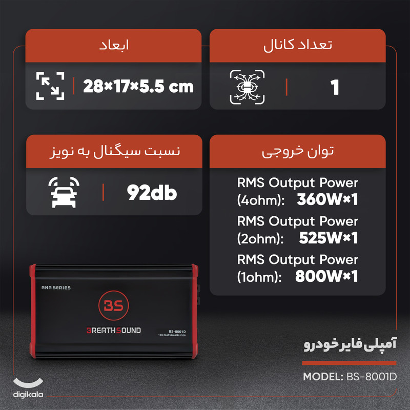 آمپلی فایر خودرو 1 کانال صدای نفس مدل BS-8001D