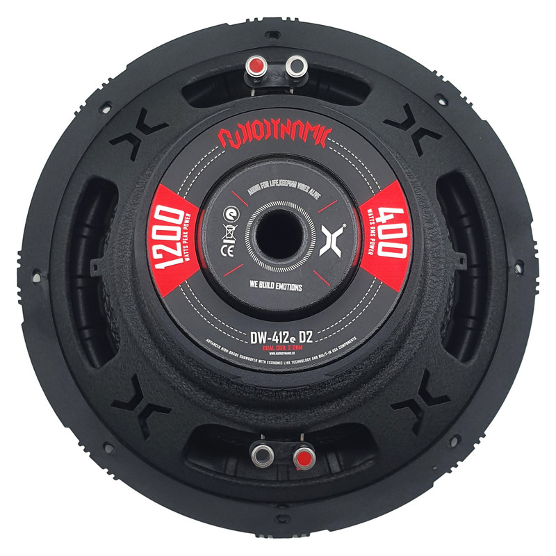ساختار فیزیکی DW-412e D2 نیز با استفاده از مگنت فریت با چگالی بالا و بدنه مقاوم طراحی شده است تا در برابر لرزش و فشار صوتی زیاد مقاومت داشته باشد. طراحی مخروط ووفر و سیستم تعلیق آن نیز باعث پخش یکنواختتر صدا و کاهش اعوجاج در بیسهای عمیق میشود.