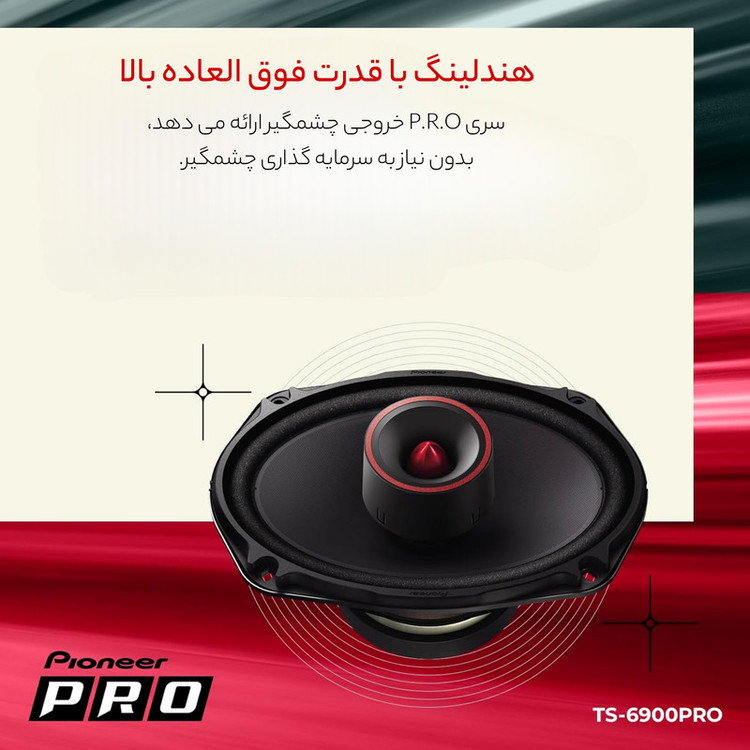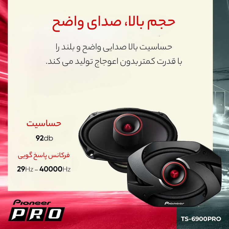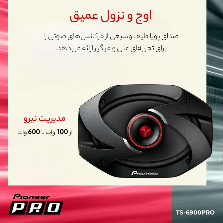 توجه داشته باشید،این اسپیکر ساخت چین هست یعنی بر روی برچسب پشت مگنت نوشته شده ساخت چین،دقت کنید که کالا ویتنام نیست و اسپیکرهای خودرو تولید شده توسط کمپانی خوش نام پایونیر، مدل تی اس 6900 پرو « TS-6900PRO » است. پایونیر یکی از کمپانی های تولید کننده لوازم صوتی و تصویری خودرو است که همواره محصولاتش را بسیار با کیفیت و کارآمد تولید می کند؛ بر این اساس محصولات این کمپانی در بین مردم بسیار محبوب هستند. این مدل با ووفر پر قدرت با توان 600 وات تولید شده تا با نصب آن بر روی خودرو، از صدایی شفاف و پر قدرت لذت ببرید. این مدل اسپیکرها همانند مدل 6975 با صفحه ای کاغذی تولید شده اند. پایونیر این مدل از اسپیکرها را با سوپر تویتر همراه کرده تا شما بتوانید از صدایی شفاف و با کیفیت تر لذت ببرید. از دیگر ویژگی های پر اهمیت این مدل اسپیکر می توان به محدوده پاسخ دهی 29 - 40000 هرتز و حساسیت 92 دسی بل اشاره کرد. اگر می خواهید اسپیکرهای پر قدرت و با کیفیت را بر روی خودرو خود نصب کنید، مدل TS-6900PRO پایونیر گزینه ای بسیار مناسب و عالیست. وجود توان بالا و ویژگی ها و امکانات خوب این مدل، قطعا نظر شما را به خود جلب خواهد کرد.