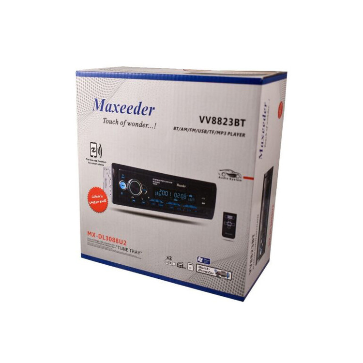 مدل VV8823BT پخشکنندهی جدید از برند « مکسیدر » است که با سایز 1DIN تولید شده است. بیشینهی صدای خروجی این محصول 4×60 وات است. به کمک درگاه AUX دستگاه میتوانید تلفن همراهتان را متصل کرده و آن را به پخشکنندهای قویتر تبدیل کنید. از دیگر ویژگی های این محصول می توان به پشتیبانی از کارت حافظه و بهره گیری از فناوری بلوتوث اشاره کرد که آن را از مدلهای مشابه متمایز میکند. این دستگاه پخش پنل جداست و دارای شش خروجی میباشد. دارای دو پورت USB که میتوان از ان برای اتصال به فلش و همچنین شارژ استفاده نمود.