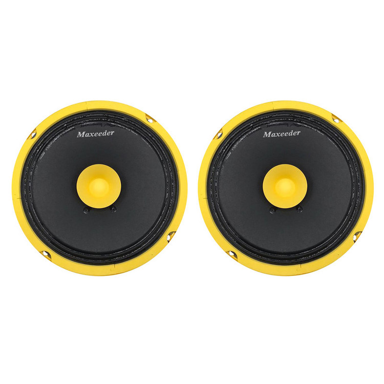 در هر بسته آن دو عدد میدرنج دایره ای 8 اینچی به سایز 20x20x8 موجود است که دارای پیشینه صدای خروجی 200 وات است .