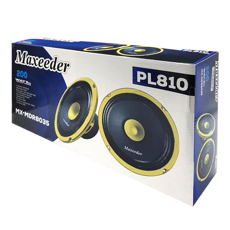 در هر بسته آن دو عدد میدرنج دایره ای 8 اینچی به سایز 20x20x8 موجود است که دارای پیشینه صدای خروجی 200 وات است .