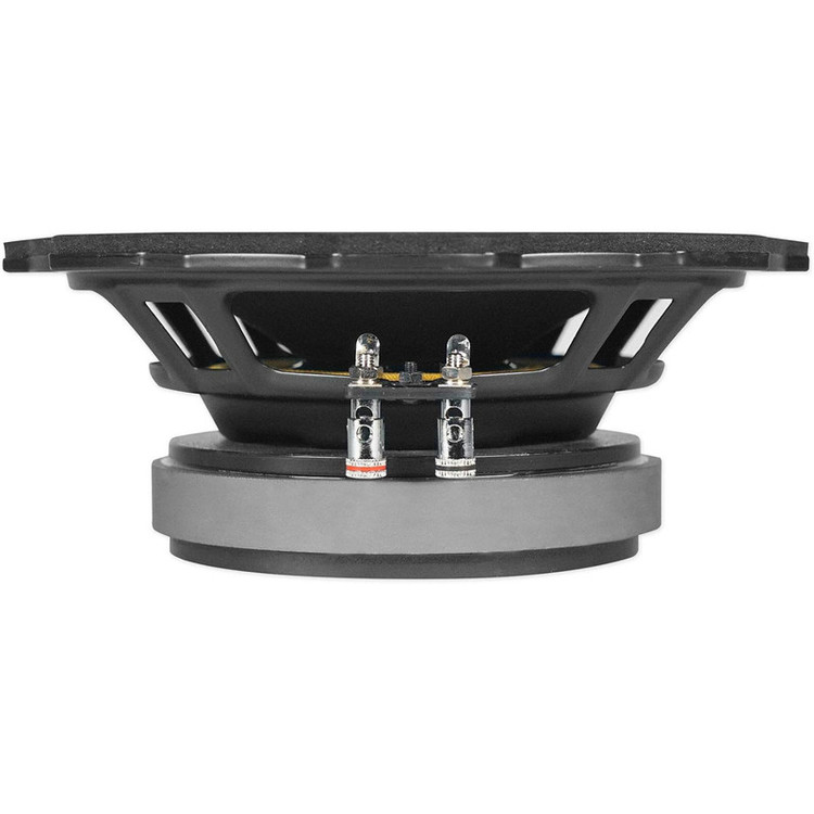 میدرنج 8 اینچی امریکن بیس GF-8FL محصولی فوق العاده خوش صدا با حجم و پرتاب صدای بالا یکی از میدرنج های 8 اینچی بسیار با کیفیت اورجینال در بازار می باشد که علاوه بر اینکه کالا ، کالای با اصالتی می باشد ، دارای قیمت بسیار مناسبی هم هستش که بسیار ویژگی متمایز کننده ای می باشد. میدرنج 8 اینچی امریکن بیس GF-8FL دارای ترمینال های فشاری با کیفیتی می باشد که نصب را بسیار آسوده می کند و اتصال بهتری را هم برقرار خواهد کرد. میدرنج 8 اینچی امریکن بیس GF-8FL دارای بولت آلومینیومی واقعی می باشد که از اندازه نسبتا بزرگی برخوردار است. منظور از واقعی این است که قابلیت خارج کردن دما از سیم پیچ و خنک کردن آن را دارد و می تواند ، به عنوان هدسینک عمل کند و در اولویت دوم جنبه زیبایی دارد. همین ویژگی باعث طول عمر این محصول می باشد. میدرنج 8 اینچی امریکن بیس GF-8FL دارای جنس صفحه کاغذی ضخیم و با کیفیتی می باشد که یکی از دلایلی پرتاب صدای این محصول محسوب خواهد شد. میدرنج 8 اینچی امریکن بیس GF-8FL دارای مقاومت و امپدانس 4 اهمی می باشد و به راحتی با امپلی فایر های استریو مناسب راه اندازی می شود و حساسیت بالایی دارد که برابر با 96 دسیبل است. میدرنج 8 اینچی امریکن بیس GF-8FL دارای پیک توان 800 وات MAX و توان حقیقی و مداوم معادل با 400 وات RMS می باشد و میبایست با امپلی فایر های استریو قوی در بازار که بالای 100 وات RMS خروجی دارند ، راه اندازی شود. میدرنج 8 اینچی امریکن بیس GF-8FL قابلیت اجرای فرکانس بسیار مناسبی را دارد که این بازه از 10000-110 هرتز می باشد و برای اینکه از آُسیب به این محصول جلوگیری کنیم تا عمر مفید آن را افزایش دهیم ، بایستی فرکانس ها را از طریق کراس اور ها به خوبی کات کنیم تا به محصول فشار وارد نشود.