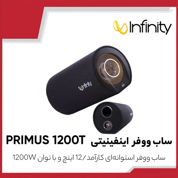 اینفینیتی یکی از سادندگان مشهور لوازم صوتی است که بلندگوها و سابووفرهای مخصوص اتومبیل آن از محبوبیت زیادی در بین علاقمندان سیستمهای صوتی خودرو برخوردار است. ساب ووفر مخصوص اتومبیل اینفینیتی مدل PRIMUS 1200T یک ساب ووفر استوانهای است که به خاطر فرم باکس و قدرت بلندگو صدای بیسی بسیار قدرتمند را با قرار گرفتن درون صندوق عقب اتومبیل تولید میکند. این ساب ووفر ۱۲ اینچی دایرهای در جعبهای استوانهای شکل با ابعاد ۴۰۶×۴۰۶×۷۱۱ میلیمتر قرار گرفته و با وجود وزن۷ کیلوگرمی خود در صندوق عقب اکثر خودروها به سادگی جا میگیرد. وجود توان خروجی اسمی ۳۰۰ واتی این محصول اینفینیتیدر کنار حداکثر صدای خروجی ۳۰۰ واتی آن، بیس مطلوبی را به گوش سرنشینان اتومبیل میرساند. امپدانس ۴ اهمی ساب ووفر اینفینیتی در کنار بازه فرکانس پاسخگویی ۳۵ تا ۲۰۰ هرتز، نشاندهندهی صدای بیس قدرتمند و شفاف است. این ساب ووفر به خاطر جای گرفتن در جعبهای مجزا و فرم خاص خود، ساب ووفری محبوب و با کیفیت برای بیشتر سیستمهای صوتی موجود در بازار به شمار میرود.