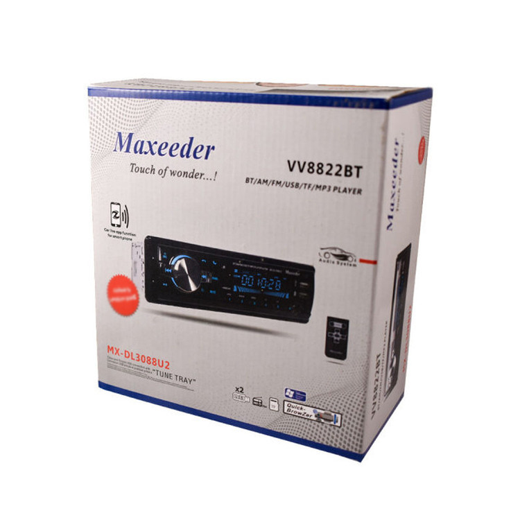 مدل VV8822BT پخشکنندهی جدید از برند « مکسیدر » است که با سایز 1DIN تولید شده است. بیشینهی صدای خروجی این محصول 4×60 وات است. به کمک درگاه AUX دستگاه میتوانید تلفن همراهتان را متصل کرده و آن را به پخشکنندهای قویتر تبدیل کنید. از دیگر ویژگی های این محصول می توان به پشتیبانی از کارت حافظه و بهره گیری از فناوری بلوتوث اشاره کرد که آن را از مدلهای مشابه متمایز میکند. این دستگاه پخش پنل جداست و دارای شش خروجی میباشد. دارای دو پورت USB که میتوان از ان برای اتصال به فلش و همچنین شارژ استفاده نمود.